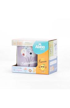 Taza 12 OZ a todo color. Con impresión de un mensaje de ánimo de la Biblia con una divertida mascota. Con caja a todo color.