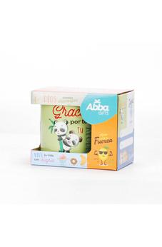 Taza 12 OZ a todo color. Con impresión de un mensaje de ánimo de la Biblia con una divertida mascota. Con caja a todo color.