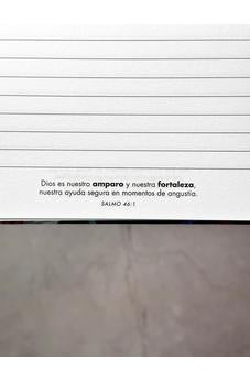 Librera de anillas Tapa Dura. Con efectos en la portada. Versículos en el interior. 192 páginas. Tamaño: 8.4” x 6.4” x 1” (213 x 163 x 25mm)