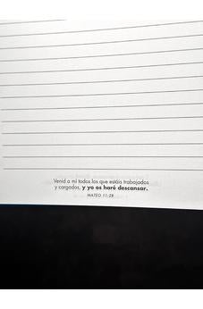 Librera de anillas Tapa Dura. Con efectos en la portada. Versículos en el interior. 192 páginas. Tamaño: 8.4” x 6.4” x 1” (213 x 163 x 25mm)